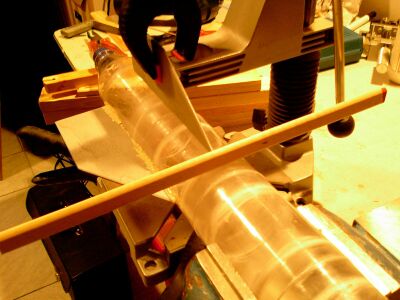 Hülle getrocknet, jetzt noch etwas stabiler machen und anstreichen. Soweit: Finnen kommen dran: Ob die Finnen auch am rechten Platz sind verrät mir die waagerechte Latte die man auf der Rakete liegen sieht. Diese Latte hat eine exakte Makierung wo sie ihre Mitte hat. Die Makierung kommt an die Finnenspitze, und nachher dann auch an das Finnenende. Jetzt wird solange verschoben bis die Latte im Gleichgewicht ist. Dann kommt der Pattex Spiegel und Glas Kleber.  Fast fertig  Jetzt fehlt nur noch der Triggerstab und sie kann starten. Starts sind aber erst in frühestens 2 Wochen zu erwarten.  Wenn der Erstflug geglückt ist kommt auch noch etwas Farbe ins Spiel. Erstflug ist geglückt, Bilder etc. siehe etwas weiter unten. --- Komentare ab hier.