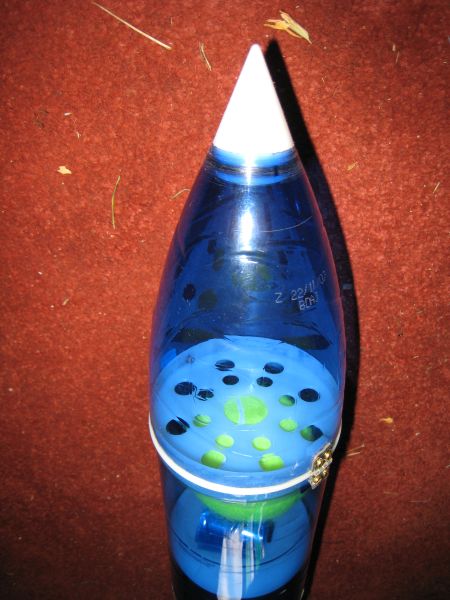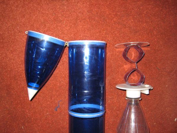 Im oberen Teil des Raketenmantels habe ich auf dem letzten Flaschengewinde eine Verschlußkappe