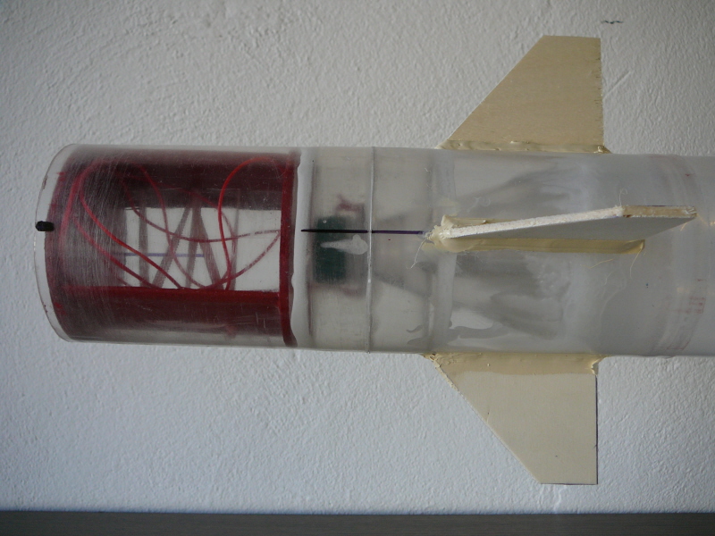 Und was macht man mit einer Tablettendose auf einer Rakete? Nutzlastabwurf? Cooles Finish, hast du mal getestet, ob das ganze auch stabil ist? Finnen vorne sind nur bei gelenkten Raketen von Vorteil und verschlechtern für unsere Zwecke die Stabilität (Druckpunkt wandert nach vorne)