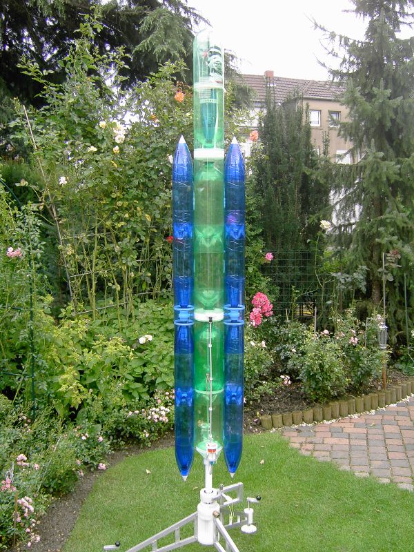 Meine neue ist startbereit! 24 Liter Booster mit zwei 1.5 Liter "Huckepack-Raketen"und innenliegender Gleitringauslösung für die gleichzeitig Auslösung der beiden Zweistufer und eine Sekunde später die Fallschirmfreigabe. Gleitbergung der Zwillinge. 800mm Hauptfallschirm. 20mm Hochleistungsdüse mit Verlängerung. Cable-Tie-Launcher 30mm. Startdruck 7,5 bar.Betankung durch abschraubbare Spitze, die im oberen Teil einen Hohlraum für Trimmgewichte hat Hier ein paar Impressionen vorab. Vorraussichtlicher Starttermin: Oktobersky 2007 Gruß Batkiter