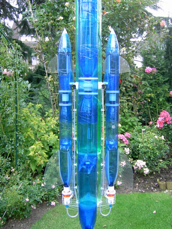 Hallo Markus! Hier ein paar Details der Booster und der Zwillinge. @ Dennis! Das Startgewicht beträgt 2600 Gramm. Das Ding hat aber mächtig Schub.  1.Stufe, 24 Liter Verbindung Hauptbooster mit beiden Zusatztriebwerken Beide Zwillinge, 2.Stufe, je 1,5 Liter  Zwillinge montiert an Hauptbooster Blick in Zielrichtung und Höhe! Dolle Aussicht! Gruß Batkiter
