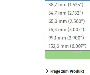 Einfach das 100mm Rohr wählen und dann kannst du im zweiten Schritt auf 6" auswählen. |