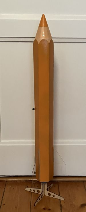 Warum also nicht zur Abwechslung mal eine Rakete in Form eines Buntstifts bauen? Habe ich bisher noch nicht auf einem Flugtag gesehen. Ich habe ja noch ein paar von den superstabilen Aerotech-Rohren (47 mmm Innendurchmesser) und eine entsprechende kegelförmige Spitze wäre leicht herzustellen. Die formgebenden sechseckigen Spanten sind schnell ausgesägt: Durch den Abstand der Railbuttons vom Körperrohr kommt es jetzt auf eine stabile Befestigung an. Der untere Railbutton lässt sich mit einer Einschlagmutter nach der klassischen Methode anbringen. Den richtigen Abstand kann man mit einem Stück Aluprofil einstellen. Für den oberen Railbutton habe ich ebenfalls ein Stück Aluprofil abgesägt, ein Loch gebohrt und das Aluprofil mit Harz angeklebt. Danach Harz in das Aluprofil eingefüllt und die Schraube in das Körperrohr eingeschraubt. Hält! Die Finnen aus Acrylglas wurden klassisch nach der Through-The-Wall-Methode eingeklebt. Für die sechseckige Außenform wurden drei Stücke aus Graupappe (0,5 mm stark) auf die formgebenden Spanten aufgeklebt. Die Spitze wurde aus einem Stück von einem Kalenderblatt (saugt nicht) geformt, in das drei Rundspanten eingeklebt wurden, um eine gute Kegelform zu bekommen. In diese wurden dann ca. 100 g Harz eingegossen und damit auch gleich eine Schlaufe angebracht. Etwas Kopfzerbrechen machte mir die “angespitzte Seite“ des Buntstifts. Aber die Pappe schmiegt sich gut an. Für die Finn-Fillets eignet sich 5-Minuten-Epoxy mit etwas Thixotropiermittel sehr gut. Die Graupappe wurde zur Verstärking zweimal mit 110-Minuten- Epoxy eingestrichen; sie saugt das Harz schnell auf. Die Pappe hat keine tragende Funktion, sondern dient der Formgebung und muss nur eine unsanfte Landung überstehen. So sieht es jetzt aus: Zur Simulation habe ich in OpenRocket eine Rakete mit rundem Außenrohr gleicher Querschnittsfläche angelegt. Mit einem F39T soll sie bei 450 g Leergewicht auf 280 m kommen. Aber es kommt ja noch das allfällige Ritual spachteln, schleifen, lackieren. Gruß Achim Tracking https://www.dropbox.com/scl/fo/zap4uvchueg080w0az5og/AOOqAeAiN2aSaAEPhiusKyk?rlkey=cuvsp1db08mrwq20gqqbpicg2&dl=0 Altimeter https://www.dropbox.com/sh/jw1nenfd45mzee3/AABZKjSB-_9DA-pLaVlOti-9a?dl=0 |