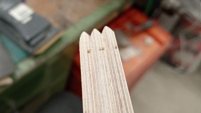 Ich habe mittlerweile die Flossen abgerundet. Alles händisch mit 120er Schleifpapier. War bei dem Flugzeugsperrholz nicht gerade eine einfache Sache und ein Bandschleifer steht jetzt auf meiner Baumarkt-Liste