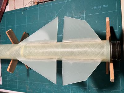 Motorrohr und Retainer eingeklebt. Die erste Finne sitzt. Die habe ich mit UHU Endfest 300 geklebt. Ich muss sagen, die Methode mit den Finnpockets gefällt mir. Hab aber vergessen, das Gewicht vor Einkleben der Finnen zu ermitteln, um zu bestimmen, wieviel die Finnpockets an zusätzlichem Gewicht ausmachen. Lässt sich aber noch hochrechnen. Gruß Achim Geändert von AchimO am 29. März 2026 um 13:13 Tracking https://www.dropbox.com/scl/fo/zap4uvchueg080w0az5og/AOOqAeAiN2aSaAEPhiusKyk?rlkey=cuvsp1db08mrwq20gqqbpicg2&dl=0 Altimeter https://www.dropbox.com/sh/jw1nenfd45mzee3/AABZKjSB-_9DA-pLaVlOti-9a?dl=0 |