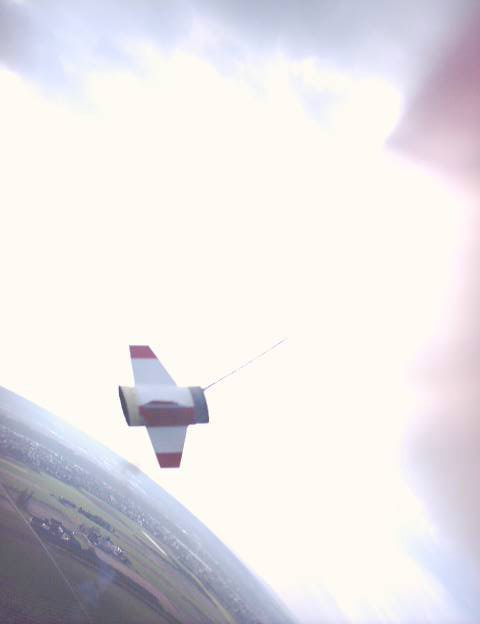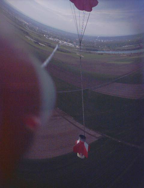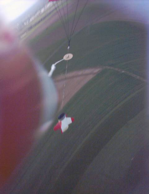 der silbrige Fleck ist der Rotter See Ralf u. ich beim hiterherschauen.... Alles in Allem war es ein super Flug, und höher als die Nike Smoke ist sie auch gekommen.... Ein hoch auf diese Kamera. Sie ist echt genial und macht wirklich gute Bilder. Sie hat gestern auch Ihre erste Taumelbergung ohne Fallschirm hinter sich und ausser dem bereits erwähnten Problem mit dem Abkacken durch spannungsverlußt beim Aufschlag ist der Cam nichts weiter passiert. Beim zweiten Flug klappte dann alles wunderbar wie die Bilder Zeigen. Und bald heißt es wieder..... auf ein Neues........ aber erst mal zusehen das ich meine "GROßE" fertig bekomme...