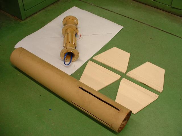 und die 4 Flossen aus 5mm Sperrholz aus dem Baumarkt.