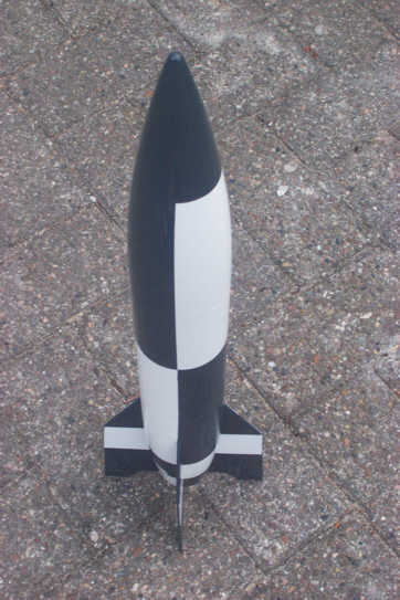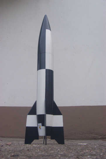 Tja, nicht schlecht Mike - bist also auch erster geblieben  Schöne Photos!  Ich kann aber nirgends ein Leitröhrchen entdecken  Ich habe mein Teil auch fertig und mich jetzt entschlossen, nach dem White-Sands Schema zu lackieren: Das Rollmuster ist dem späterer Forschungsraketen schon sehr ähnlich - jede Seite sieht anders aus! (Quelle: Alway) Folgende Datei wurde angehängt: