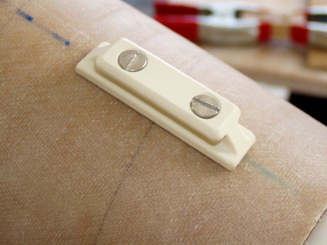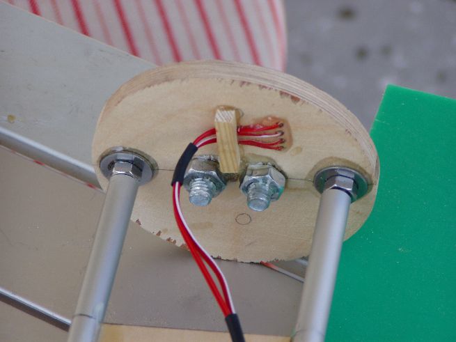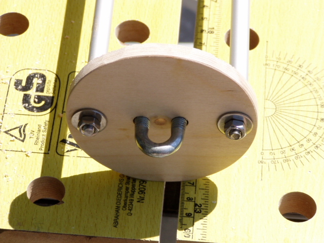 ebenso die Befestigung am oberen Ende !! Abgerundetes Hölzchen gemacht mit zwei eingeschraubten Gewindeeinsätzen. Abgerundet damit sich der Fallschirm nicht verhaken kann !!
