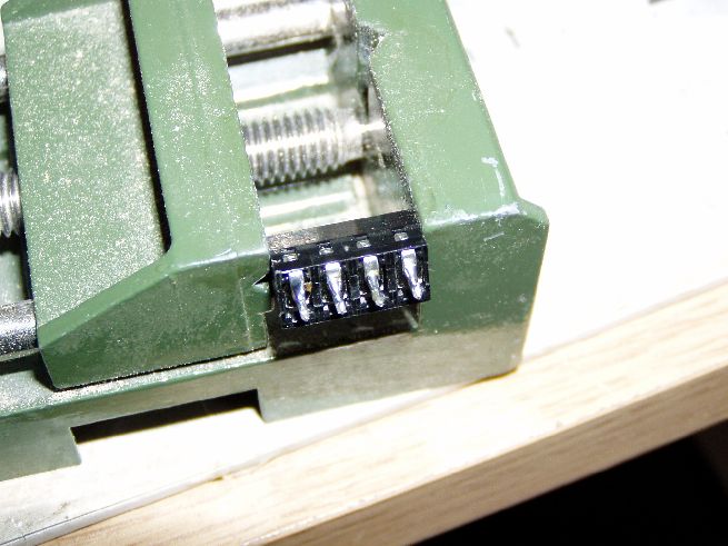 So nachdem der RJD vorbei ist, und meine "BSD Apache mod" dort erfolgreich geflogen ist, möchte ich mit dem Baubericht fortfahren. Um die SN0 für die Zündladungen der Fallschirme anschließen zu können, brauche ich Klemmen die ich gasdicht einharze. Doch zunächst mal Löcher bohren, je eins pro Anschlusspin, dann Kabel durchschieben: Klemme vorverzinnnen: Klemme dann an Kabel anlöten !! (Warum vier ?? um schon mal für zweite Elektronik vorbereitet zu sein) Kabel mit Schrupfschlauch zusammenfassen und hinten noch eine Zugentlastung anbringen: