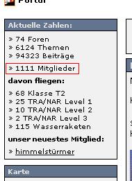 Heute gab es auch wieder ein Ereigniss: Der 1111te Member im Forum.