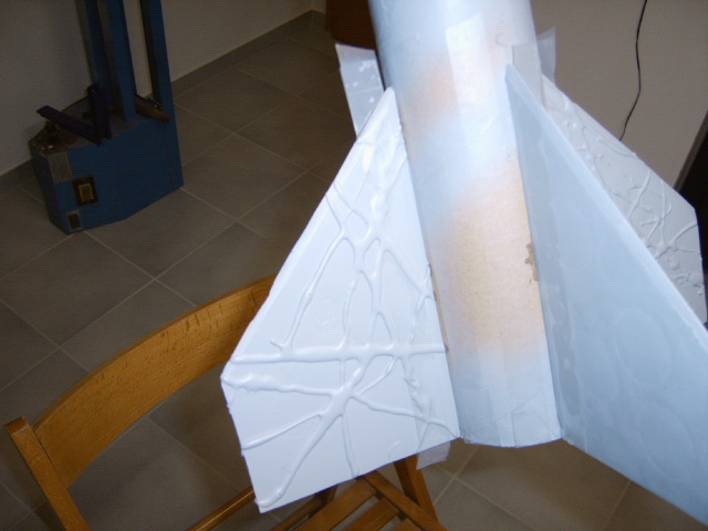 Fillets habe grad eben schon teilweise hergestellt(Ich bastel gerne um die Zeit, Ich mag des feeling abends mit Boxershort in meiner Werkstatt zu stehen  ) Ich habe nun etwas umSTRUKTURIERT. Und zwar habe ich auf 2 Finnen einige Epoxystreien gezogen, diese beiden Finnen sollen das Flügelprofil einer Biene nachstellen: Das andere Paar Finnen, habe ich schön glatt geschliffen, so dass auch die minimalen Ausbuchtungen der Löcher kaum zu sehen sind: Die Finnen habe ich vorher sauber abgeklebt, sowie das Rohr, um einigermaßen gebrauchbare Fillets hinzubekommen, meine letzten waren nicht so toll. Aber ich muss sagen, ich habe mich deutlich gebessert! Abgeklebtes Rohr: Und das hier ist ein Fillet, das grade in der Aushärtungsphase ist: Das Rohr werde ich diesesmal aber nicht so großartig finishen, da ich überlege für die gelben Streifen Klebefolie zu verwenden, da hab ich mal eine schöne gesehen, Oracover(?) heißt die glaube ich. Über den Schriftzug muss ich mir noch gedanken machen, ob ich meine Airbrush wieder flott machen, da fehlt eine Dichtung, und die Nadel müsste gerichtet werden. MfG Fabian