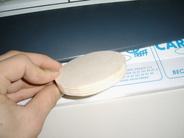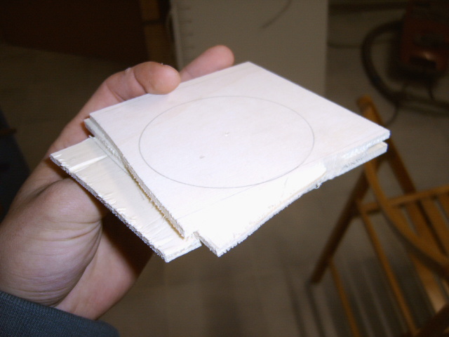 So, nun habe ich das Plättchen ausgesägt, und es sieht stabil genug aus, wobei ja noch eine Bohrung hinein kommt: Meiner Meinung nach sind die Schichten auch sehr gut miteinander verleimt, von einem industriell gefertigtem 9-lagigen Sperrholz nicht weit entfernt, rein optisch: Was ich mich im Moment noch frage: Wie Groß sollte die Bohrung minimal sein, reichen 35mm, oder sollte ich doch besser 55mm Bohren? Was meint ihr? MfG Fabian