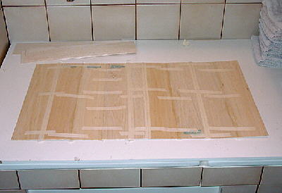 wieder mal ein paar Bilder vom Baufortschritt. Die Styroscheiben sind fertig, nun wird das selektierte Balsa möglichst exact geschnitten, verleimt und mit Kreppband zusammen gezogen. Folgende Datei wurde angehängt: