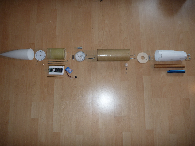 sehr cool!! Eine Frage nur: wie hast Du den Becher für die Ausstoßladung gesichert? Stichwort: Rückstoß...nicht das es Dir das Ding beim Zünden wie ein Projektil in die Elektronik treibt. Ich habe bei meiner L3-Rakete das ganz erstaunliche Rückstoßkräfte gesehen (Edelstahl-U-Profil in der Mitte verbogen von 1,8g SP).