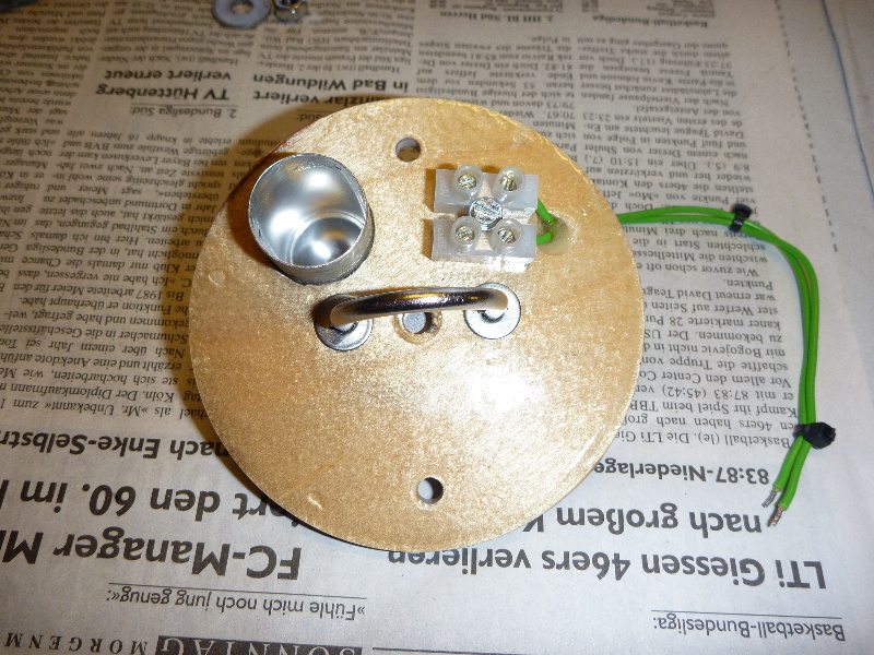 Der nächste Part, die Elektronik-Kammer fertig stellen: Als nächstes der Spant, welcher dann später oben in der Spitze, die Elektronik-Kammer abschliesst. Die oberen Verschraubungen der Gewindestangen auf dem Spant sind nach dem einkleben verborgen. Daher werden diese wieder bei "Höchsttemperatur" eingebacken. Von unten wird dann die Elektronik-Kammer von diesem Deckel verschlossen.... ...der dann auf dem eingeklebten Ring aufsitzt. Hier noch mal der Verschlussdeckel. Der Container für die Ausstossladung ist eine Druckdose eines Asthma-Sprays