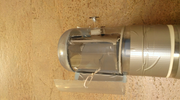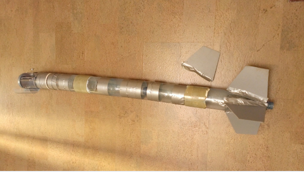 was das Fallschirmsystem wiegt, kann ich nicht genau sagen, da unsere Küchenwage zur Zeit kaputt ist. Das Gewicht der Rakete habe ich errechnet, indem ich mich einmal mit und einmal ohne Rakete auf die große Wage gestellt habe. Demnach müsste die Rakete 300-400 g wiegen. Ich habe keine Ahnung, ob dies ein guter oder schlechter Wert ist. Ich freue mich schon auf das Worldwide-Update, Yossarian ![]() Nun aber zu den Ergebnissen des Flugtages: Hier das Video (Klick mich!) Die Flüge waren...ok. Ich habe mir da etwas mehr erhofft. Da ein Team-Mitglied krank war, hatten wir leider keine Full-HD Kamera und konnten auch keine schönen High-Speed-Aufnahmen machen. Die Rakete flog krumm...doch das Problem habe ich bei der Analyse des Videomaterials entdeckt. Der Aktivator, der den Tommy Timer am Boden in Position hält, ist bei diesem Fallschirmsystem horizontal eingesteckt, nicht vertikal. Dabei benötigt man mehr Kraft, um den Aktivator vom System zu lösen. Da die Rakete durch die Größe eher langsam beschleunigt, wird die Rakete in ihrer Flugrichtung beeinflusst: Das Fallschirmsystem an sich hat perfekt funktioniert. Beim letzten Flug ist jedoch die Fallschirmleine gerissen...die Rakete stürzte kaum gebremst ab. Dennoch überlebte das Fallschirmmodul und die Rakete den Absturz ohne Schaden, nur ein Flügel war lose. Selbst der Tommy Timer und die Nadel waren noch intakt. Das hat bewiesen, was ích mir immer gewünscht habe: Ein crash-sicheres Fallschirmsystem! Hier noch Bilder der "beschädigten" Rakete: Schlüsse, die ich aus dem Flugtag ziehen werde: Ich plane eine leicht verbesserte Version, die Air plus. Diese hat ein Volumen von 5 Litern. Die Verbindungsstücke über den Tornardo Tubes werden mit Appolinaris-Flaschen gemacht, diese haben ein längeres, gerades Stück. Der Aktivator wird nun wieder vertikal eingesteckt. Später soll eine Führungsschiene dazu kommen. Gruß