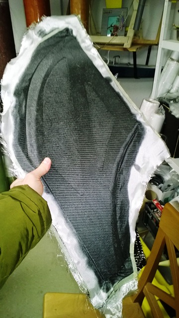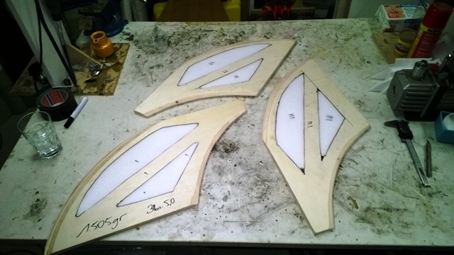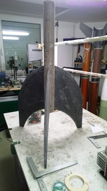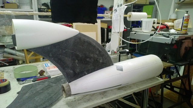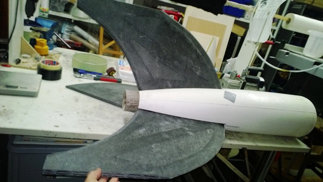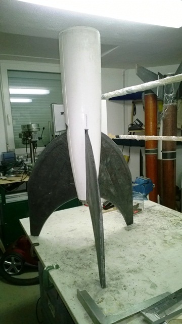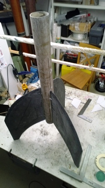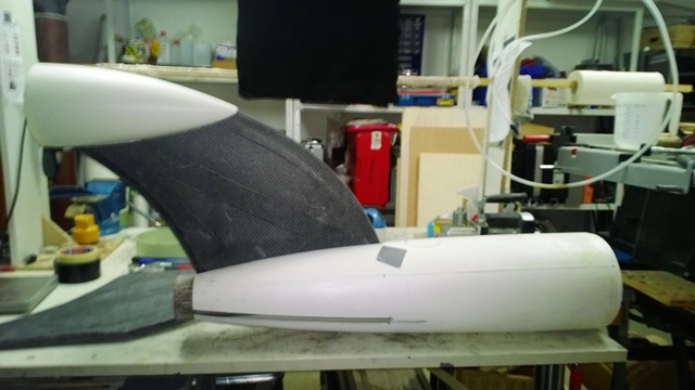 jetzt sind die fins am MM fixiert. Eine GFK/CFK Verstärkung und innere Filets kommen als nächste...