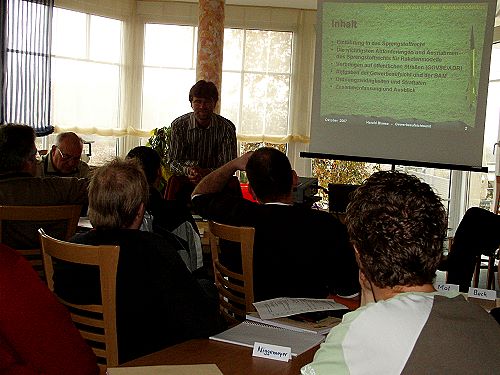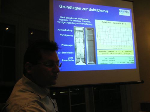 Moin zusammen, nachdem wir gestern abend weit nach 22:00 Uhr die Tagung offiziell beendet haben (die unverbesserlichen Teilnehmer strapazieren die Referenten ganz schön  ) geht es heute morgen seit ein paar Minuten mit Volldampf weiter ! Heute gehts um die Paragraphen. Für diesen Teil des Lehrgangs durften wir zwei Beamte vom Gewerbeaufsichtsamt München Land hier am Tagungsort begrüßen. Das Thema momentan ist: "Einführung ins Sprengstoffrecht" speziell für uns Raketenflieger
