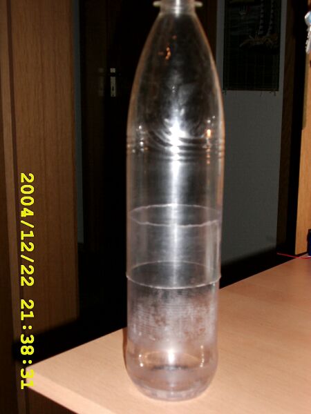 Nö. Die andere Möglichkeit wäre die SST. Aber wir sind ja jetzt bei der HHM. Wenn die Rakete komplett doppelwandig wird, also wenn das innere und das äußere Rohr aus gleichen, 9 cm langen Stücken besteht, dann kann man ja nur an der oberen bzw. unteren Flasche erkennen, ob es sich um SST (Muffen innen) oder HHM (Muffen aussen) handelt. Doppelwandig! Faszinierend! So kann man einen Druckkörper verstärken, ohne mit Glasfasern oder ähnlichem rumschmieren zu müssen. Kann mir einer von euch sagen, welche Flaschen über oder in die 1-Liter-Mehrwegflaschen von Fanta/Sprite passen? Ich glaube, wir sind gerade dabei, echt stabile Druckkörper zu konstruieren. Kann mir vorstellen, dass 20 bar drin sind. Der Weltrekord ist unser Gruß Robert