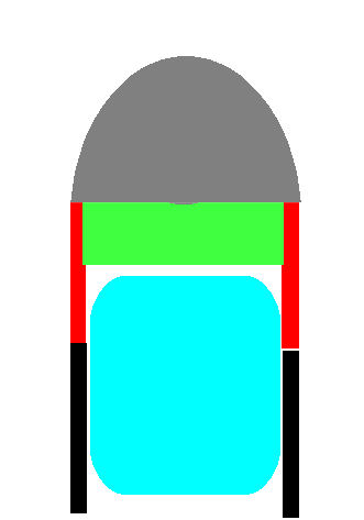 Joa, die Beschleunigung ist kernig. Maximaler Schub 160 Kilo, maximale Beschleunigung knapp 50 g! Die Befestigung des Tanks mit der übrigen Rakete bereitet mir im Moment noch etwas Kopfzerbrechen. Der flache Boden des Tanks wölbt sich unter Druck ca. 2-3 cm nach aussen. Daher ist eine großflächige Verklebung des Tankbodens mit dem Fallschirmmodul nicht möglich. Der Tank braucht Platz zum "arbeiten". Hier mal ne schnell gemachte Skizze: Ich hab mir das so vorgestellt: Das Fallschirmmodul (grün) hat eine Hülle (rot), die etwas nach unten über das Fallschirmmodul übersteht. Das Ganze wird locker über den Tank (hellblau) gestülpt und mit Bändern oder Kabelbindern oder ähnlichem gehalten. Die weitere Tankverkleidung (schwatt) besteht aus Depron, denn sie braucht ja keine großen Kräfte aufzunehmen. Allerdings überlege ich gerade noch, woraus ich die Wandung des Fallschirmmoduls (rot) herstelle. Die Türen der Fallschirmkammern sollten ja ebenfalls aus diesem Material bestehen. Bei "normalen" Fallschirmmodulen mit 60/80/90 mm Durchmesser klappt das ja prima mit PET-Flaschen. Aber was nimmt man bei 280 mm Durchmesser? Ich hab mir mal so eine Guttagliss-Hobbycolor-Platte aus dem Baumarkt geholt. Das Zeug lässt sich prima spanend bearbeiten, kleben und thermoplastisch verformen. Allerdings finde ich das Zeugs noch etwas zu schwer, die komplette Wandung würde so 240 Gramm wiegen. Ob ich jetzt doch Flugzeugsperrholz nehme? Oder ob ich verglastes Balsa nehme? Hm. Gruß Robert |