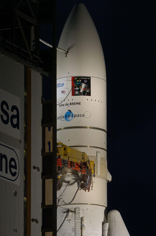 Hier nochmal ein detailiertere Aufnahme von Vol164, die Rakete wurde übrigens "VILLE DE BREME" getauft. (Ich werde mal für einen der nächsten Flüge "VILLE DE HALBERSTADT" vorschlagen ) Hier siehst Du den rechten Missionsaufkleber sehr deutlich, der linke ist sehr einfach gehalten, Du kannst ihn vom Logo der HP des Satellitenbetreibers selbst erstellen. http://www.xtarllc.com . Maqsat-B2 wurde von Kayser-Threde gebaut, schreib denen doch mal eine Email mit der Frage nach dem Missionslogo für Dein Projekt, die helfen bestimmt gerne weiter. http://www.kayser-threde.de/de/press/news_detail.php?id=101 VG Michael "Clustern? Find' ich Clusse!" (Von mir) |