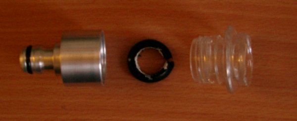 Alles klar! Kann Dir einen POM-EInsatz drehen der in den Flaschenhals hineinreicht und und der an der Auflagefläche einen Einstich für einen O-Ring hat. Der drückt dann auf den Boden der Düse und den Flaschenhals. Warte auf Deine Mail. Bye Batkiter