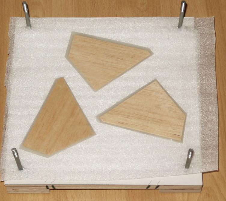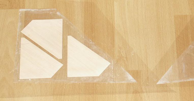Jetzt kommen die Flossen drauf und mit der zweite Hälfte des Laminats zugedeckt. Paul