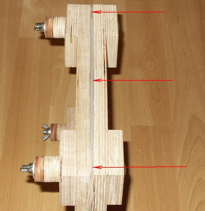 Und so bleibt das bis morgen. Was wollte ich noch ansprechen? Ich habe für meine Presse 20mm Multiplex genommen. Ist aber nicht so stabil wie ich dachte. Was ist denn passiert? Nach dem zusammenschrauben der Presse kann man mit bloßem Auge erkennen dass sich die Platten etwas verbogen haben. Als Abhilfe kann man die Platen noch zusätzlich mit Schraubzwingen zusammenschrauben. Oder nimmt man was dickeres! Paul