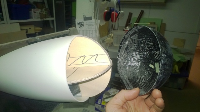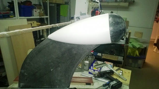 etwas langsamer als Jan gehe ich auch voran...diese Füsse sind echt viel Arbeit... Die Endkappe ist aus CFK, extra dafür angefertigt.