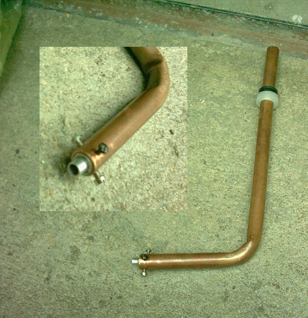 Meine ist auch fertig,ist ein Kupferrohr in den Schraubverschluss(das schwarze unten als Schlauhalter) geklebt und an den Nippel inder mitte vom Anschluss ein 2tes Rohr zum dicht machen,geht perfekt hat unten nen 30cm Erdspieß steht perfekt....