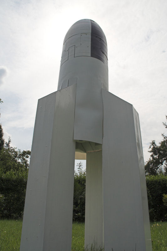 Die Lackierung der "Friede" ist so gut wie fertig. Zuvor bekam der zylindrische Teil des Rumpfes noch eine Hülle aus 0,3er Polystyrol-Platte. Hier sind Bilder: Jetzt geht´s an den Einbau der timer und der Fallschirme. Ebenso muss noch der Tank mit Filament- Klebeband verstärkt werden. Und danach geht´s an die Startvorrichtung. Gruß Robert |