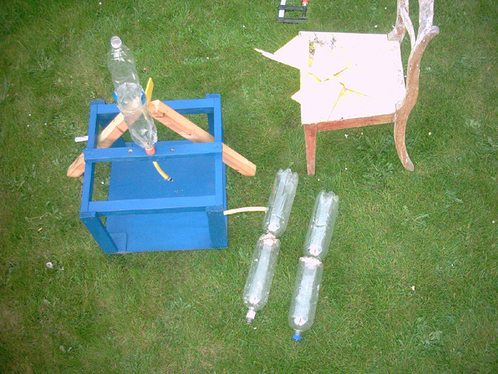 Ich hab das Leitwerk wieder abmontiert und werd nach neuen Leitwerken suchen, weil die doch sehr groß waren! Ich hab das Rohr in einer Praktiker Markt gekauft und in der Gardenaabteilung ne Stück entdeckt das wenn man es sehr kräftig in das Rohr drückt, es sich vor das Abdichtungsgummi des Rohres setzt und da acuh bleibt(musste es so kaufen, sozusagen das Gardenaventil im Rohr). Oben hab ich ne Schraube durchgemacht und davor kommt von innen ne Plättchen aus Hartkunststoff. Ich hoff das sie trotz des hohen Gewichtes von ca.700g bei 10bar abhebt. Also ich glaub net das die Rohre so schnell platzten, da sie sehr stabial aussehen. Aber wenn ja, möcht ich erst mal ne Bunker anlegen;-)