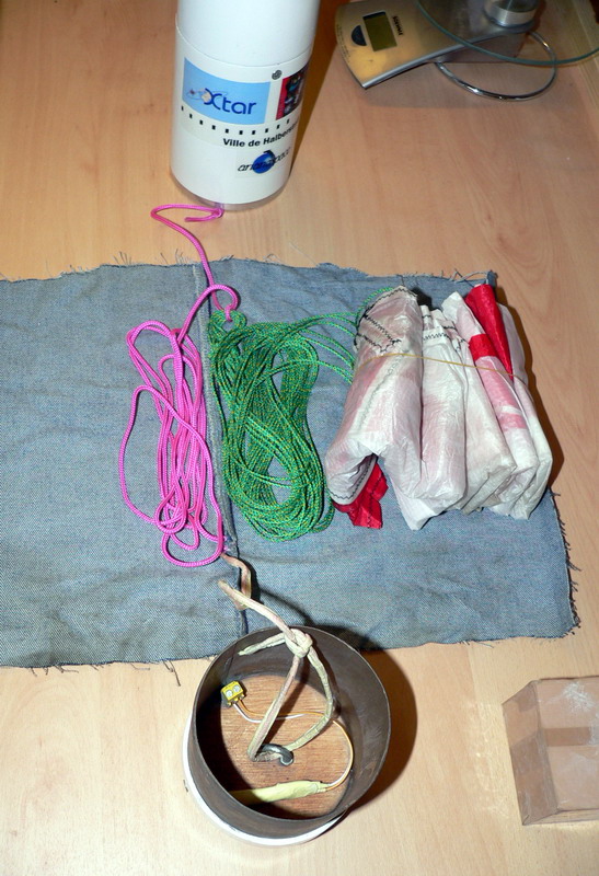 Ich schulde Euch noch ein Bild, wie ich den Hauptfallschirm zu packen gedenke... Der Jeanslappen ist am Schockband kurz nach der Öse im Kuppler befestigt. Nun wird der Lappen mit dem Inhalt zusammengerollt und die Enden herumgeschlagen. Ready to takeoff. Ciao, Rolli