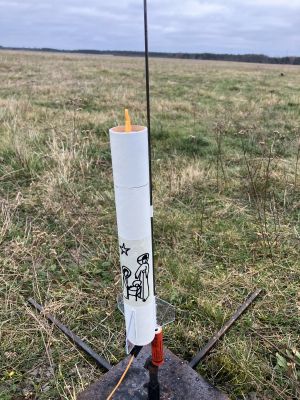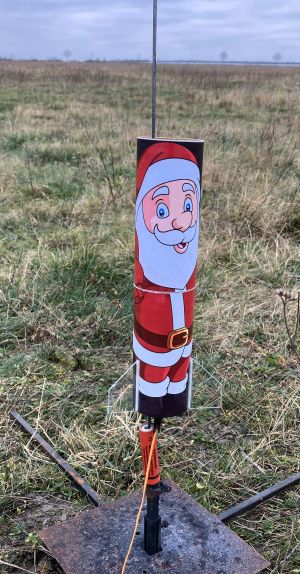 Der "Rentierschlitten-Transporter" von Andreas hatte bei seinem ansonsten recht ordentlichen Flug auch noch eine leicht waagerechte Komponente. Aber ist das noch eine Modellrakete oder schon ein Feuerwerkskörper?