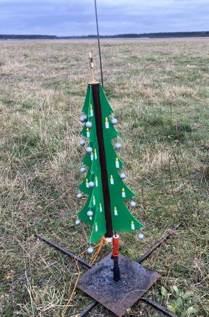Der Weuhnachtsbaum flog auf einem zu dünnen, daher biegsamen Leitstab. Das führte zum Flug in der Art eines Marschflugkörpers mit einer unsanften Landung. Von den 20 angebrachten Kugeln blieb eine dran. Aber siehe da: Im ersten Gang fanden sich 14 Kugeln, bei einem weiteren Gang, der zufällig in der Nähe des Landeplatzes vorbeiführte, fanden sich weitere 5 Kugeln, sodass alle 19 gefunden wurden!
