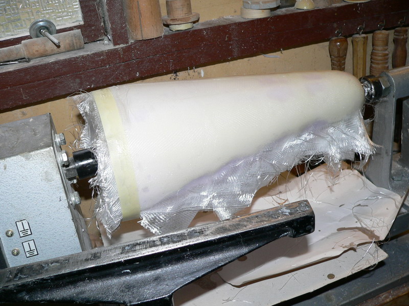 Ein Kupplungsstutzen wurde innen im Rohr und somit passgenau laminiert. Später, wenn die beiden Hälften der Spitzen zusammengeklebt sind, wird der Kupplungsstützen in die Spitze hineingeklebt. |