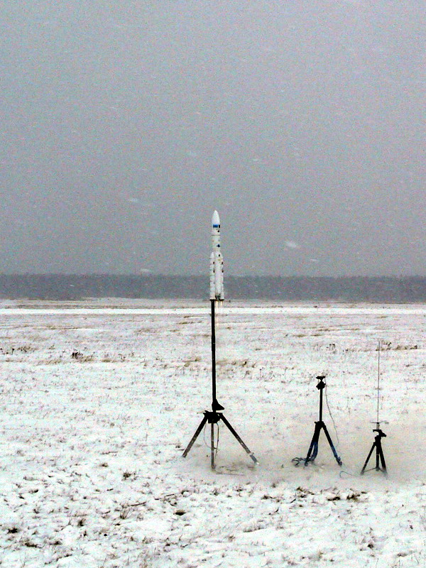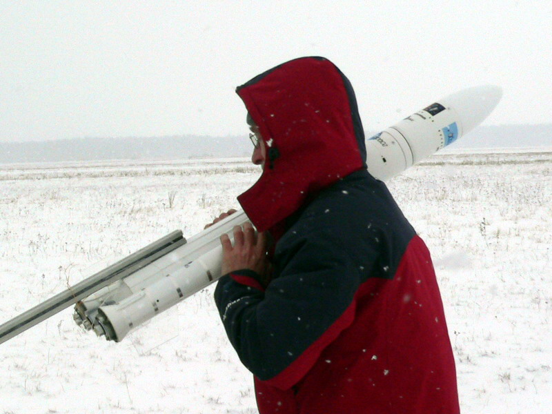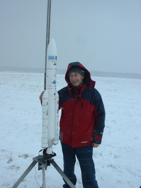 @ Rolli, als kleiner Trost hier mal noch das obligatorische Foto vor dem Start Unter so extremen Wetterbedingungen haben bestimmt noch nicht viele Leute ihre Modelle gestartet aber einen Vorteil hatte es doch, der viele Schnee hat die Spitze der Ariane super weich aufgefangen und gerettet VG Andreas
