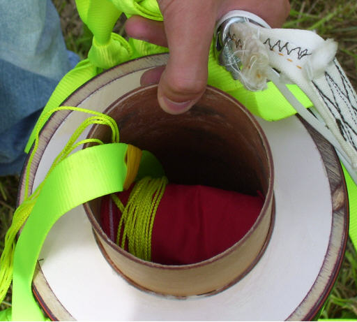 Anschließend musste natürlich ein Übergang von der Spitze zur Mittelsektion geschaffen werden. Das geschah mit dem passenden Kuppler von PML, welcher jedoch ebenfalls exzessiv verstärkt wurde. In diesem Falle jedoch natürlich von innen. 2 Lagen 125er Gewebe zieren ihn von innen und nehmen dem Phenolic die eher „brüchige“ Charaktereigenschaft ab. Damit im Innenrohr kein allzu großer Sprung durch die Kante entsteht, wurde der Kuppler im gesteckten Teil innen ordentlich abgerundet. Im hinteren Teil ist dies unnötig. Das Bergungsseil besitzt an der Stelle, an dem sie an dem Kuppler von innen schleifen könnte, einige Lagen einfach Isolierband, welches problemlos gewechselt werden kann – falls irgendwann nötig. Das saubere Laminieren eines Kupplers von innen ist übrigens denkbar einfach - ein Luftballon übernimmt den Anpressdruck, bis das Epoxid- Harz ausgehärtet ist. Er ist anschließend auch ohne große Umstände entfernbar. Oft bleibt er nicht einmal freiwillig am Gewebe kleben!