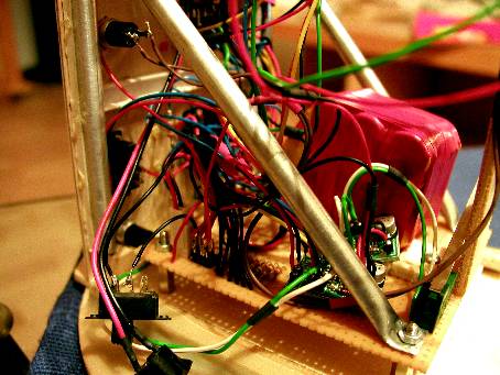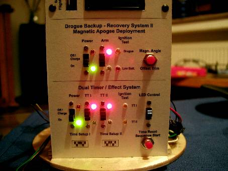 Letzte Nacht machte ich abermals eine Nachtschicht bis in die frühen Morgenstunden. Ich habe es endlich geschafft. Schätzungsweise 40-50 Lötstunden einschließlich Testen, 20 m Kabel, ca. 100 Stück, und über 200 Lötstellen.... Nun ist alles komplett und ich bin überglücklich, dass alles einwandfrei funktioniert. Zur Funktion: SALT-3 LCD: 0N/OFF-Charge-Schalter (Main Power) erklärt sich von selbst. Er gibt im OFF-Modus die rote Ladekontroll-LED frei, welche beim Laden des Akkus leuchtet. Im ON-Modus schaltet er die Masse für alle Baugruppen frei nebst aller LEDs. ARM-Schalter: Oben Testmodus. Rote LED leuchtet. A2 erscheint im Salt LCD. Mit dem anderen Kanal dieses 2fach Wechslers schalte ich ein kleines Subminiatur-Relais, ebenfalls ein 2fach Wechsler. Im Testmodus gibt der Schalter die Masse frei und das Relais zieht an. Beide Zünderausgänge des SALT werden auf die beiden Test-LEDs APO und E2 des Control-Panels geschaltet. Geht der Schalter in den ARM-Modus, wird die Masse vom Relais getrennt und gibt in dem stromlosen und monostabilen Zustand die Zünderausgänge des SALT auf die richtigen Zünder. Dies hat einen Vorteil! Sollte ich mal einen Spannungsabfall, sagen wir auf 8 V, bekommen, so fällt das 12-Relais immer ab und gibt die Zünderausgänge des SALT immer auf die richtigen Zünder in den Kammern, der SALT arbeitet bei 8 V immer noch. Außerdem spart dies Strom im ARM-Modus. Hätte ich das Relais so geschaltet, das es im stromverbrauchenden (100 mA) und angezogenen Zustand die Zündimpulse auf die richtigen Zünder gibt, dann hätte ich bei 8 V Betriebsspannung ein Problem... Der SALT arbeitet einwandfrei, die Rakete hebt ab, jedoch würden lediglich die Kontroll-LED des Panels blitzen und nicht die Fallschirmauswurfladungen... Die Ignition-Test-LEDs habe ich derweil schon eingeführt, die NiCd-Charge-Buchse ist nur freigegeben, wenn alle Baugruppen auf OFF stehen. MAD: ON/OFF-Charge-Schalter erklärt sich von selbst, ARM-Schalter macht entweder rotes Licht (OFF) und gibt den Zündimpuls auf die gelbe Ignition-Test-LED oder grünes Licht (ON) und zündet im Fall der Fälle den Drogue-Redundanz-Zünder. Die Low-Batt.-LED ist auf 9 V eingeregelt. Mag. Angle Offset Trim-Taster dient zum RESET der zum Winkel korrespondierenden Spannung des Magnetfeldsensors. Der MAD ist ausschließlich aus Drogue-Backup vorgesehen! Ich finde nämlich die TRA-Vorschrift sehr empfehlenswert, daß falls man keine Motorausstoßladung nutzt sondern ausschliesslich über Elektronik fliegt, man für den Vorfallschirm ein redundantes System haben sollte/muß! Dual-Timer: ON/OFF-Charge-Schalter erklärt sich von selbst, schaltet auch gleichzeitig die rote OFF-LED oder die grüne ON-LED und macht gleichzeitig die Tinys scharf. Mit den Schalter TT I und TT II kann ich jeweils, wiederum wegen besserer Sichtbarkeit, den Schaltzustand durch rote und grüne LEDs sichtbarer machen, jedoch auch beim dem jeweiligen Timer zwischen der gelben Ignition-Test-LED (Test, Schalter oben) und den richtigen Zündern (Schalter unten) switchen. LED-Control-Schalter auf ON (oben) läßt alle LEDs leuchten, dieser Schalter in der unteren Position (OFF) macht ALLE LEDs dunkel, um Strom zu sparen. Er kann also alle LED-Massen kicken! Wenn die Klappe der Elektronik-Bay zu ist, sieht sowieso keiner mehr die LEDs. Zusätzlich kommen noch die beiden 6er-Dip-Schalter Time Setup I und II zur Codierung der beiden Zeitstufen zwischen 2 und 16 Sekunden in 2-Sekunden-Schritten dazu... Time Reset / Sequence Start-Taster und auch der Beschleunigungsschalter, welcher auf die Platine gelötet ist, dienen a) zum Triggern im Test-Modus und b) zum Triggern durch Starterkennung. Vorgehensweise am Startplatz: Normalzustand: Alle Schalter oben! Main-Power auf ON, alle LEDs leuchten rot (OFF) bis auf die kleine grüne ON-LED des SALT-3 LCD. Nun muß ich nur noch sukzessive, wie beim Lesen eines Buches, alle Schalter von links nach rechts in die untere ON-Position schieben und die Baugruppen nach unten hin abarbeiten. Nach und nach werden alle Lichter grün! Alles grün heißt SICHTBAR alles i.O.!!! Anschließend mache ich mit dem LED-Control-Schalter Dunkelheit im LED-Himmel, Klappe der Bay zu und ab geht die Post! Viele Grüße, Hendrik PS.: Als Akku kommt ein selfmade 9zelliger Sanyo NiCd mit 300 mAh zum Einsatz SOL-2 Die Wissenschaft hat keine moralische Dimension. Sie ist wie ein Messer. Wenn man es einem Chirurgen und einem Mörder gibt, gebraucht es jeder auf seine Weise. Wernher von Braun (1912 - 1977), deutsch-US-amerikanischer Raketenforscher http://solaris.raketenmodellbau.org Solaris-RMBder Verein fürs Forum. |