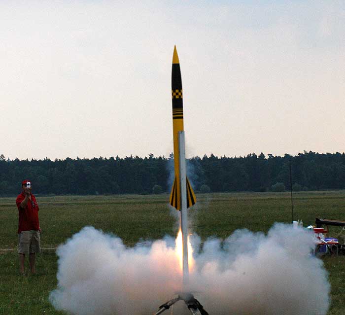 Ich muss euch loben ! Top !! Wirklich schön, dass man ne bleibende Erinnerung an den Flug hat und ich später mal an meinen jetzigen, momentanen Kontostand.. Jo, Andreas, sieht fast danach aus, als wärst du der einzige - bis auf die Videomaker (Danke Roman!!) - der sie _ganz_ auf´s Bild gebracht hat !? Dany ? 2 coole Sachen fallen mir übrigens auf deinem Foto auf, Andreas.. Zum einen kommt´s echt rüber, dass der BlueThunder- Start war, wo eh n bisschen so Grummeln von Unwetter (Donnern *lol*) im Hintergrund zu hören war und zum anderen beim Blick auf den Rauch an der Startrampe: Sind das 2 Rauch- Ringe ? *glücklich*, Marxi