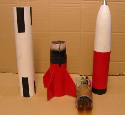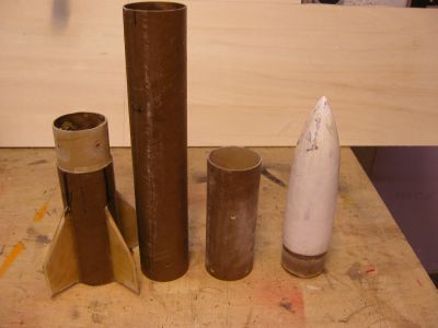 ich habe den Gedanken der low budget Rakten noch mal weiter verfolgt und mir zum üben für die folgenden Projekte mal einen scale Nachbau vorgenommen. Da der Rohrdurchmesser ja durch die vorhandenen Papprohre vorgegeben war habe ich einfach mal alle Maße des Originals in Excel eingetippt und dann auf den Durchmesser des vorhandenen Rohres runterskaliert. Das Modell hat dann eine Länge von 850mm und wiegt 670g ohne Motor und Fallschirm. Aber mal der Reihe nach mit Bildern. Die Versandrolle wurde verglast, zerlegt und nach der Pizza gebacken. Die Spitze ist aus Styrodur gedreht und mit Glas belegt. Die E-bay ist auch gleichzeitig Kuppler, trägt hier einen Magier (ja auf dem Bild ist falsch herum) und wird in die Spitze eingeschoben. Dann spachtel und schleifen und ........... und in der Zwischenzeit habe ich versucht eine Vorlage für die Lackierung des Orginals zu finden habe aber leider nichts gefunden was brauchbar war. Also habe ich das Ganze nach ein paar Bildern frei Hand lackiert. Die Rakete soll mit einem BC125 fliegen, daher habe ich direkt den Kopfspant mit der Anschraubplatte eingebaut und von der Mitte aus ein Rohr schräg nach draußen geführt. Jetzt kann man den Motor mit dem Kopfzünder einschieben, das Kabel taucht dann an der Seite wieder auf dann kann man den Motor festschrauben. Alles zusammengesteckt, jetzt fehlen noch ein paar Aufkleber aber da brauche ich mal ein paar Tips von euch wie ich das machen kann denn die Buchstaben einzeln zu lackieren habe ich wirklich keine Lust. Viele Grüße Andreas In Wirklichkeit ist die Realität ganz anders !? |