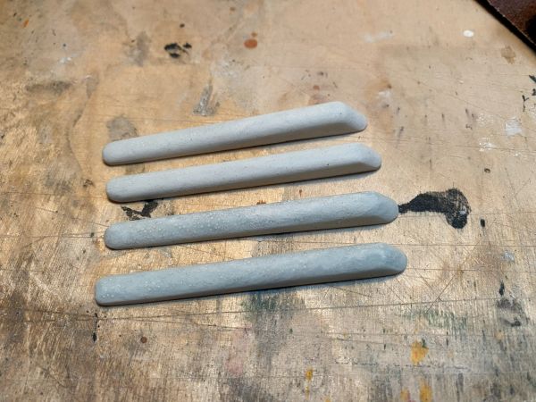 Der Trick ist aber, daß die Pinselstiele schon so schön rund angeschliffen sind.
