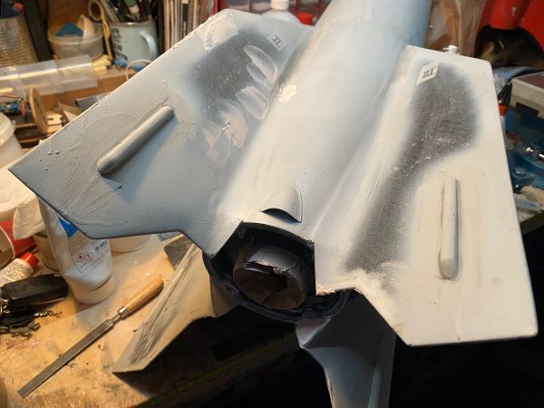 Alle Macken sind soweit gefüllert und/oder gespachtelt, jetzt steht als nächstes Schleifen, Naßschleifen und grundieren auf dem Plan.