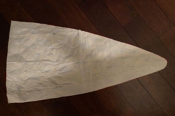 Roman hat aus Küchenkrepp und Klebeband Schablonen für die Zuschnitte für Spitze und Finnen hergestellt und mir diese freundlicherweise überlassen.