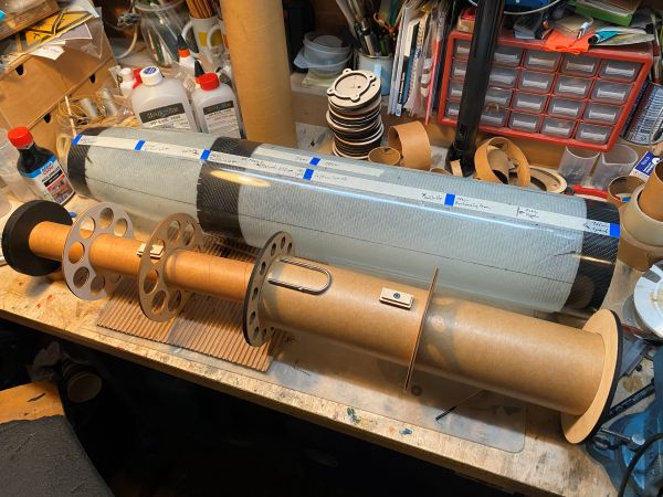es geht ein kleines Stück weiter: Das 4" PML Rohr für das Innenrohr und das 4" Kupplerrohr konnte ich auf einer Formatkreissäge passend und pikobello winklig ablängen. Und wie der Zufall es so wollte. habe ich in einem Restekarton von mir noch ein 44cm langes Stück 54mm PML-Rohr gefunden, aus dem jetzt das 430mm lange Motorrohr wird. So muss mein schönes neues 54er Rohr gar nicht zersägt werden und kann für weitere Projekte ganz bleiben. Ist ja unfassbar, was das Zeuch mittlerweile kostet.... Hier ist das Innenleben mal lose zusammengesteckt. So soll das ganze Konstrukt später im Körperrohr sitzen. Aber am Stück geht das da nicht rein, jeder Ring möchte einzeln eingeklebt werden. Von daher geht das ab jetzt alles nur schrittweise und langsam, da jede einzelne Klebung in der warmen Küche übernachten möchte. Als erstes wird mit Hilfe von JB Weld temperaturfestem 2K Kleber aus meinem Motorrohr und dem Retainer ein Stück. Danach wird der Schubspant über das Motorrohr gesteckt und direkt auf dem Retainer aufliegend verklebt. Motorrohr mit Schubspant werden dann als ein Stück in die GFK Hülle eingesetzt, mit dem ersten Ring zentriert und verklebt. Sieht leider nicht so sauber aus, wie ich das gerne gehabt hätte, da die Harzpampe hierzu mit einem an einem Stab angebrachtem Löffel in den Tiefen des Körperrohrs appliziert wird. Egal, viel hilft viel. So sieht dann irgendwann mal das "Business End" aus Zweiter Ring aus 4mm Birke Dritter Ring aus 6mm Multiplex, hier endet das Motorrohr und beginnt das 4" Innenrohr Auf dem Ring eine Aufdoppelung aus 4mm Sperrholz als Zentrierung für das Innenrohr und als Verstärkung für den Aufhängepunkt der Schockleine. Unterhalb und oberhalb, (deswegen schaut das Motorrohr etwas durch den Spant hindurch) sind kurze Stützringe aus Phenolrohr aufgeklebt. Ich habe schon wesentlich massivere Aufhängepunkte gebaut, aber da war das Gewicht der Zelle auch drei, viermal höher. Das wird halten. Zwischen den Ringen müssen jeweils auch die Halter für die Railbuttons eingeklebt werden, da sonst die Ringe nicht mehr daran vorbei passen. Dazu habe ich M4 Gewindemuffen in einen Halter aus zwei Lagen Sperrholz eingeklebt und die so vorbereiteten Platten mit ordentlich angedicktem Harz und Glasmatte eingeklebt. Mit einer Schraube und einer Hülse wird der Halter in Position gehalten bis das Harz fest ist. Soweit Jan Geändert von Kabelmann am 19. Dezember 2025 um 23:17 |