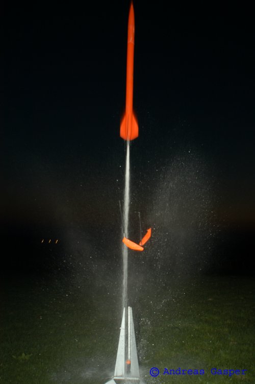 Hier noch ein kleines "Schmankerl". Nach der Bauaktion sind wir aufs Feld gestiefelt und haben von sämtlichen Raketen Fotos und Videos angefertigt. Hier meine rote beim Start. Folgende Datei wurde angehängt: