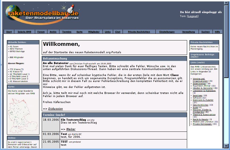 die Software-Entwicklung für unser Forum aus der Schmiede "Fruth" steht vor dem Ziel ! Deshalb suchen wir 10 Beta-tester, welche das neue Portal auf Herz & Nieren testen, die Software quälen und mit Spass am Testen an die Sache gehen. Design-technisch ist unser Haus- und Hofgrafiker Bobito schwer am arbeiten um auch die letzten Teile anzupassen. Also : Wer zuerst kommt, testet zuerst und hat als erster auch die Übersicht über alle neuen Features des Boards. Eines der wichtigsten Features wird wohl sein, dass man bestimmte Threads nur noch für Einzelne zum schreiben freigeben kann. Damit werden Baudoku's nicht mehr zerrissen ![]() Nun, ran an die Tasten, eine Mail an : tom@raketenmodellbau.de Betreff: Betatester Die Tester werden dann explizid freigeschaltet. Gehen mehr als 10 Mails ein, behalten wir uns vor die Tester auszusuchen. Viele Grüße Tom |