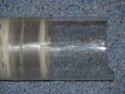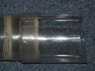 Ist nun das kaputte Zylinderteil längs einmal aufgetrennt, so kann man es mit Leichtigkeit von der Muffe ablösen.
