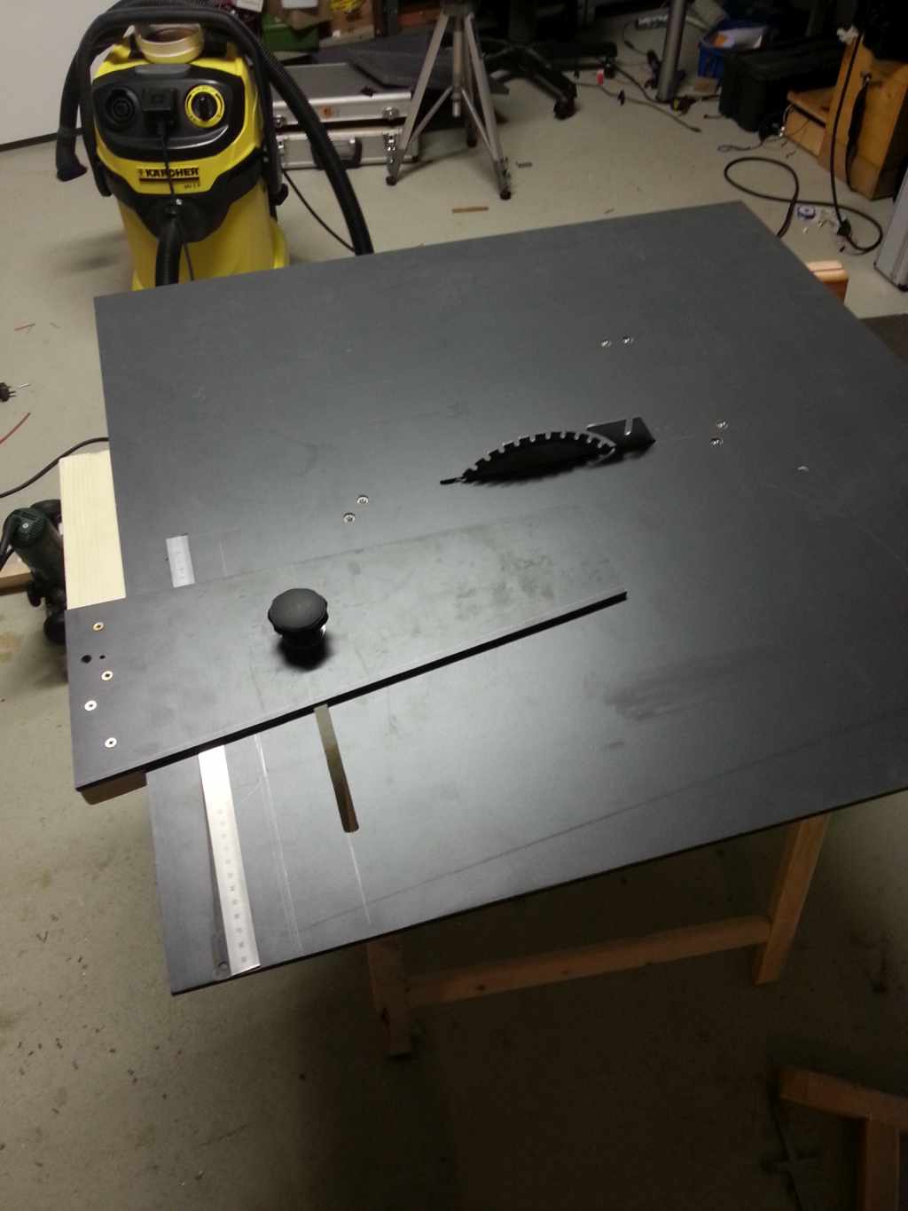 am Wochenende habe ich eine alte Kreissäge recycelt. Der Tischler meines Vertrauens hatte eine Melaminharz Fassadenplatte übrig. Daraus habe ich den Maschinentisch gebaut. Da originale Sägeblatt ist durch ein trapezverzahntes HM Sägeblatt ersetzt worden. Das Untergestell sind zwei Baumarktböcke die ich unten mit Scharnieren verbunden habe. Die Führung für den Quersupport und ein neuer Sägeblattschutz fehlt noch. Das schön an der Säge ist der Große Arbeitstisch und dass ich sie einfach und Platzsparend wegstellen kann. Gruß Ralf Geändert von RalfB am 24. November 2014 um 12:00 #Don’t Look Up |